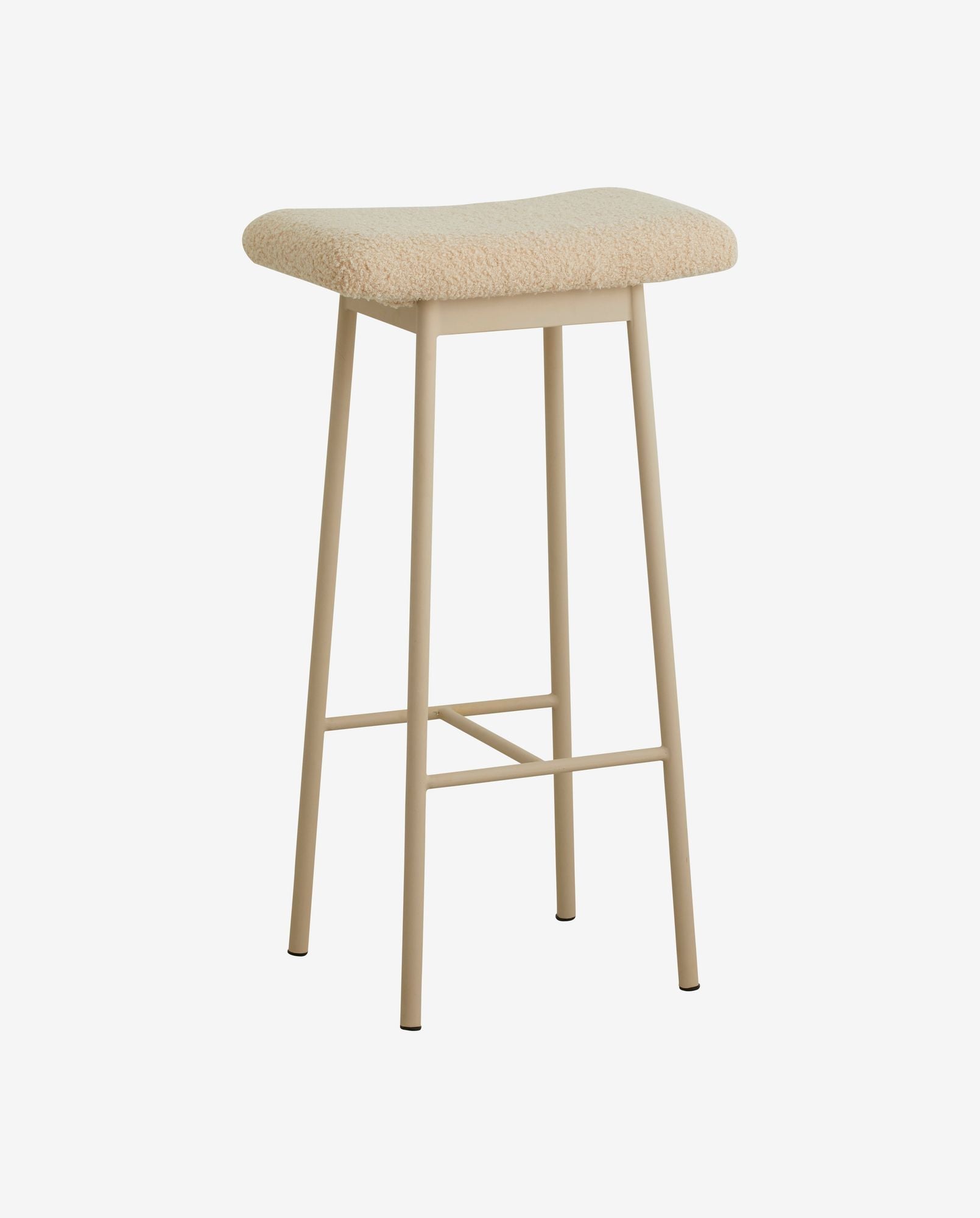 Zala Bequemer Barhocker Beige Teddystoff Sitzkomfort mit Metallfußstütze