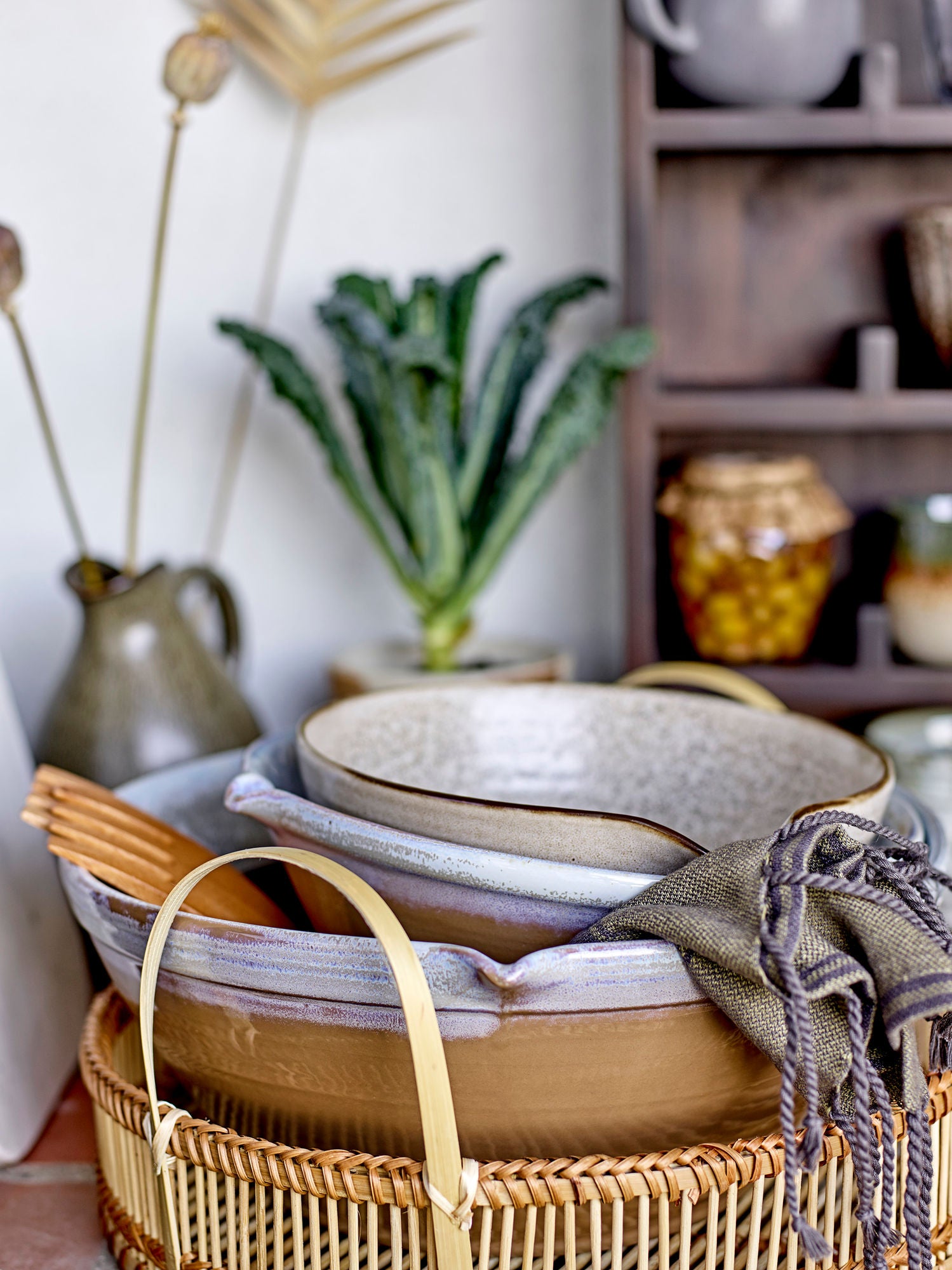 - Landhaus: Steinzeug, Leinen, warme Naturtöne