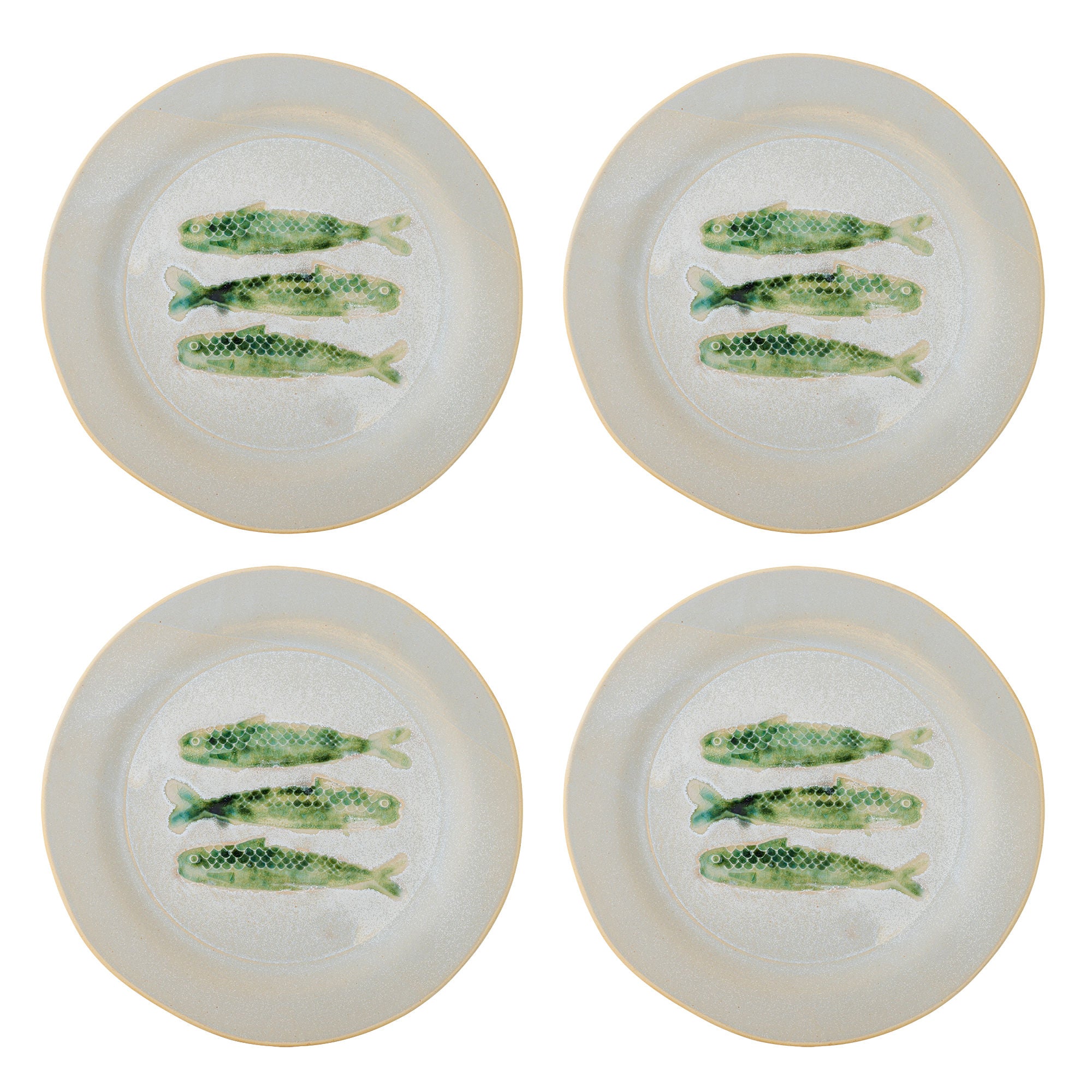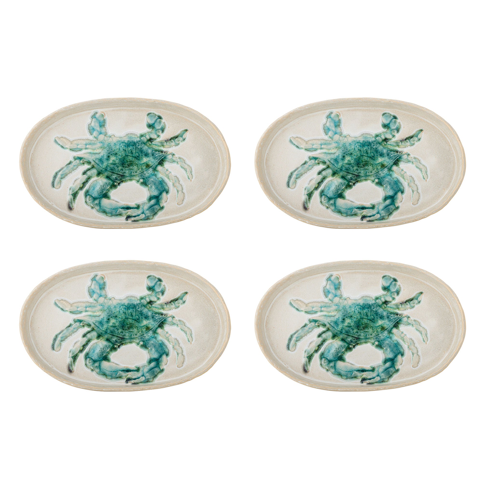 Hadden Steingut Teller mit Grünem Hummer Motiv Glasiert Vierer Set
