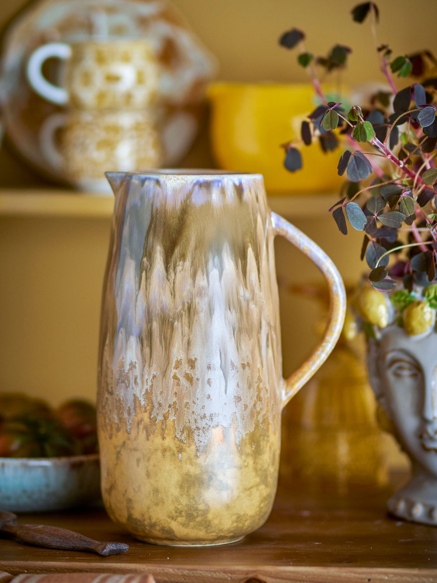 Taupe Steingut Krug mit Glasur Farbvariante für Tischdeko und Funktion