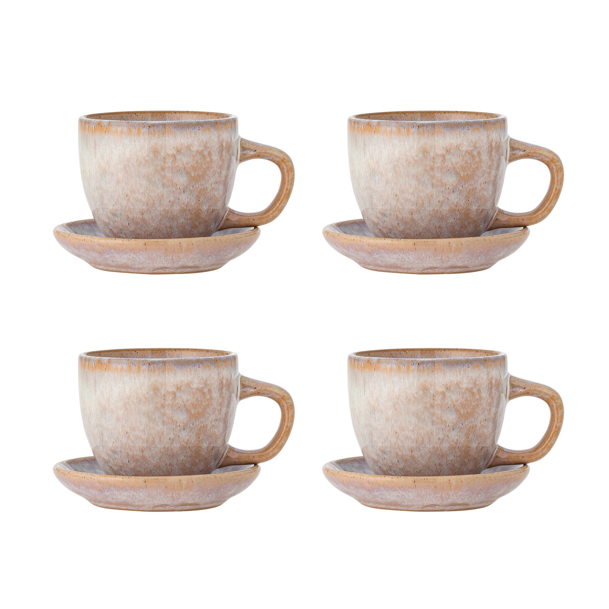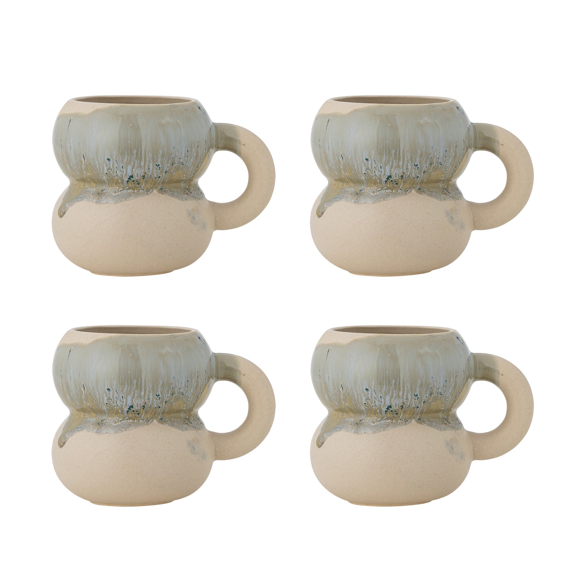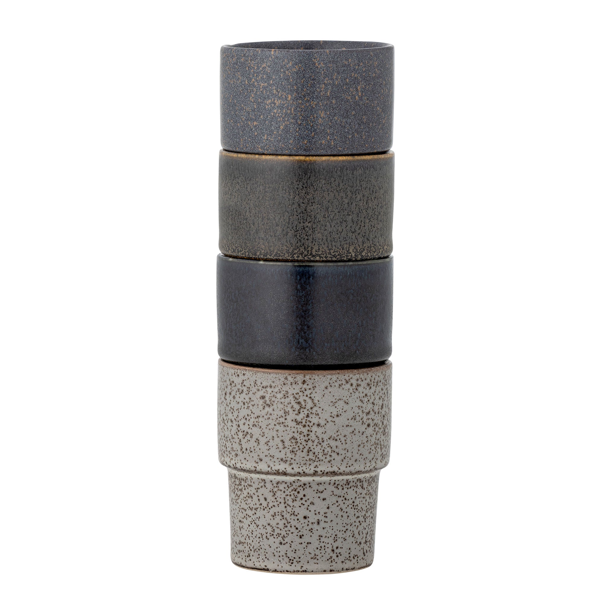Joseph Becher 4er-Set, reaktive Glasur in Grün- und Brauntönen