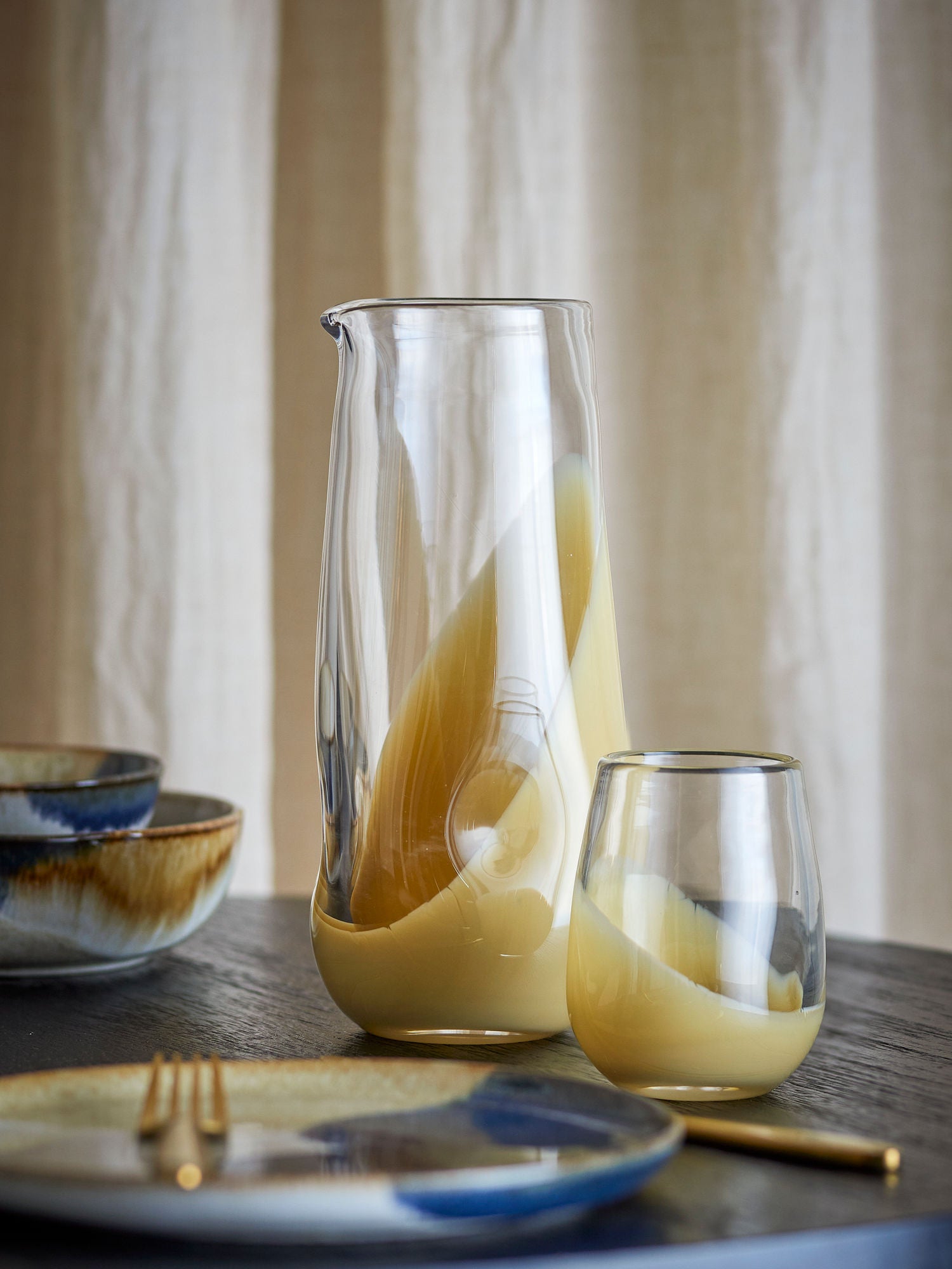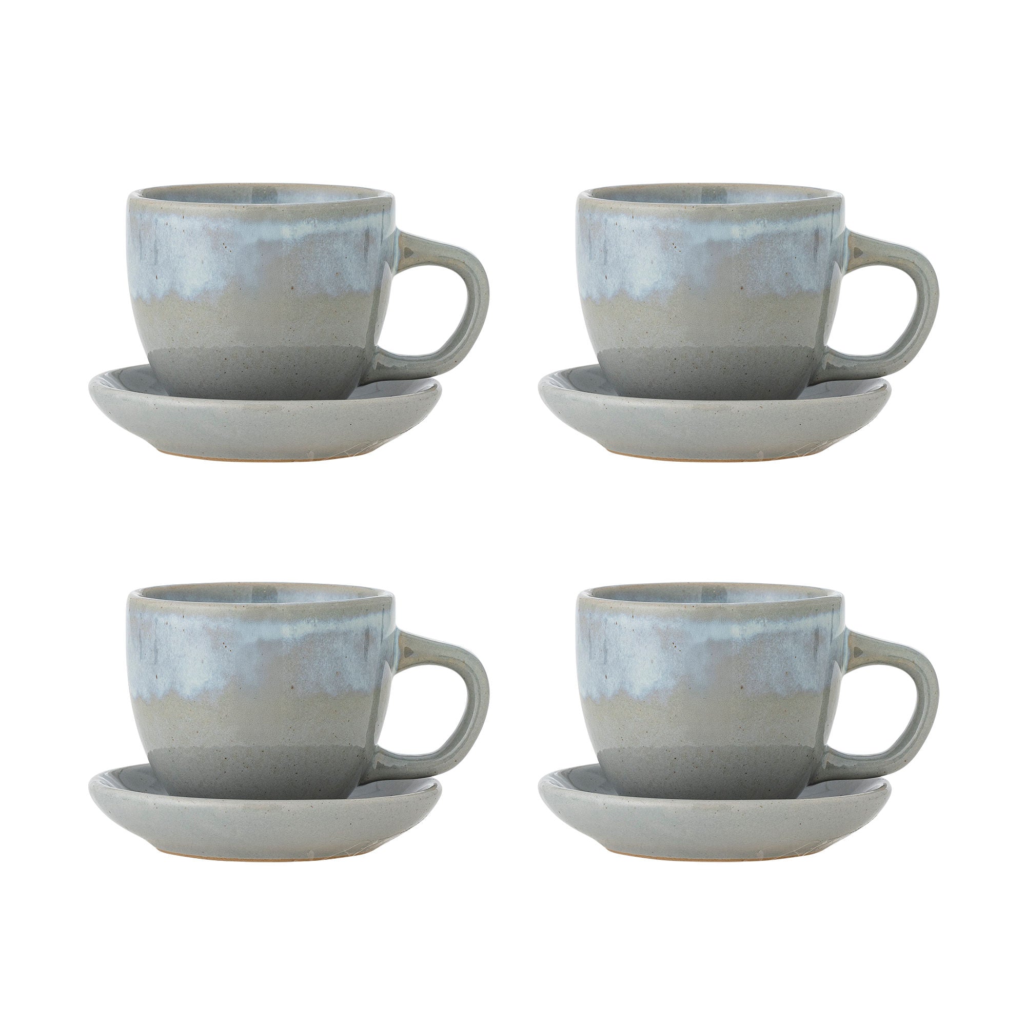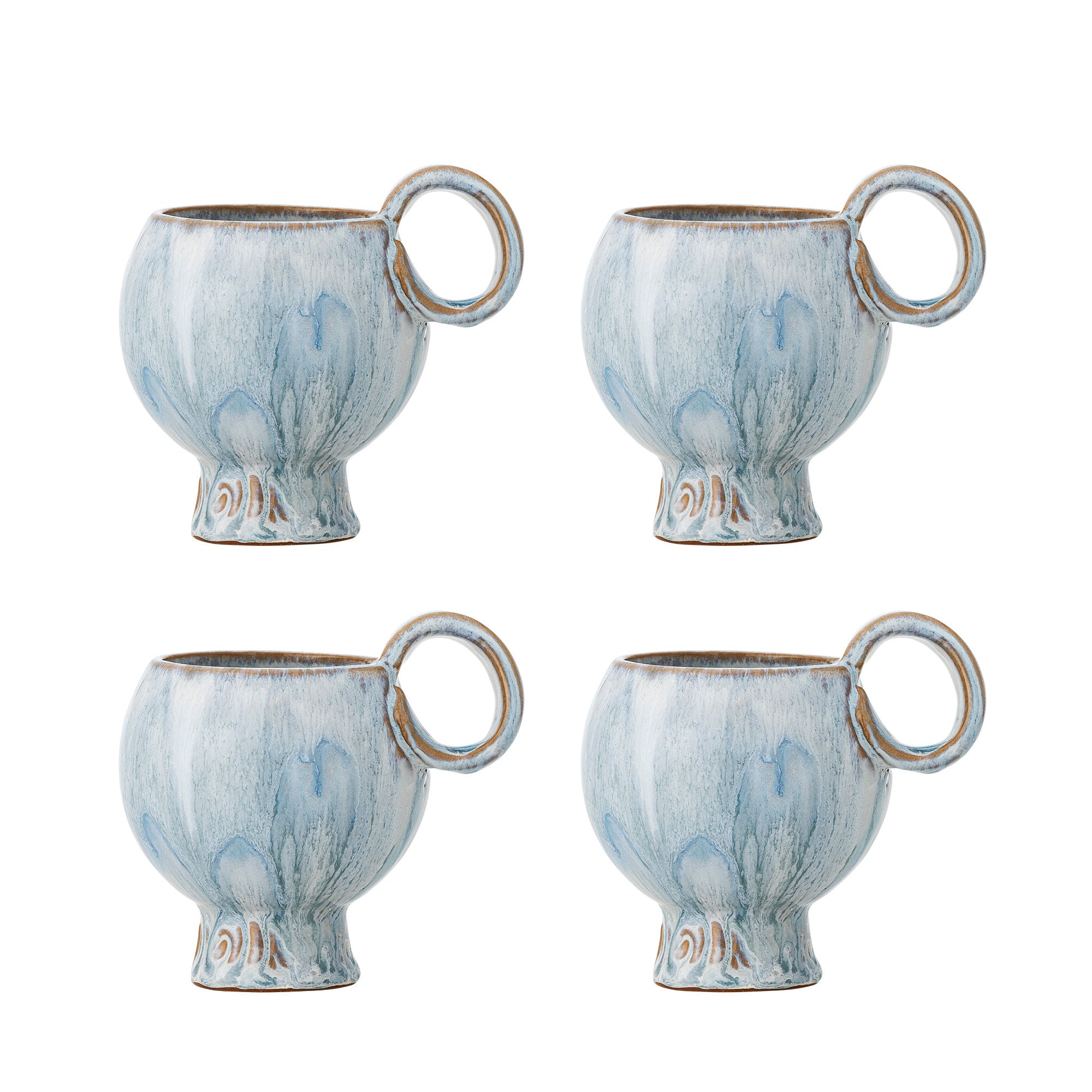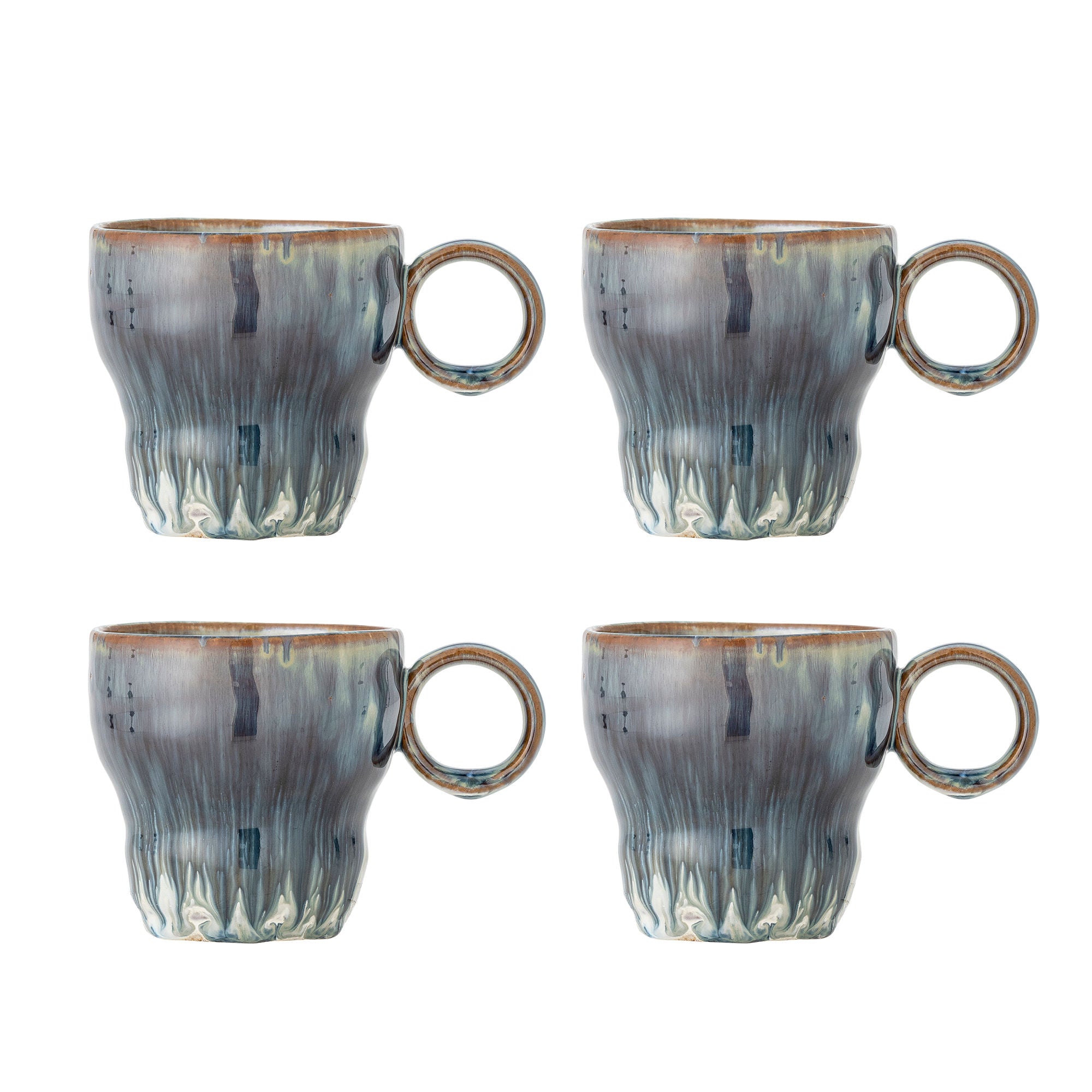 Deana Becher Set Steingut mit Reaktiver Glasur Blau Beige Streifen Unikate