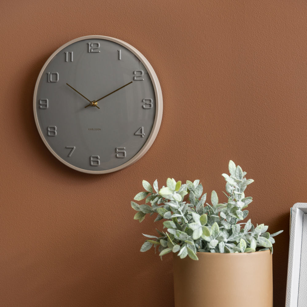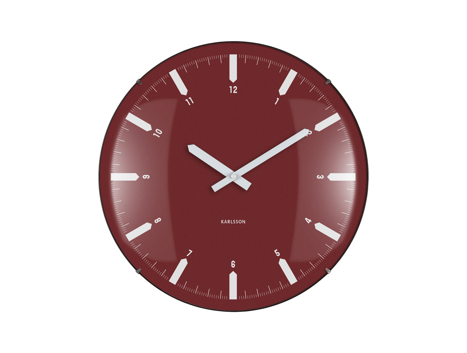 Wanduhr Fuerte Dome Burgunderrot Mit Kuppelglas Ziffern Und Goldfarbene Zeiger