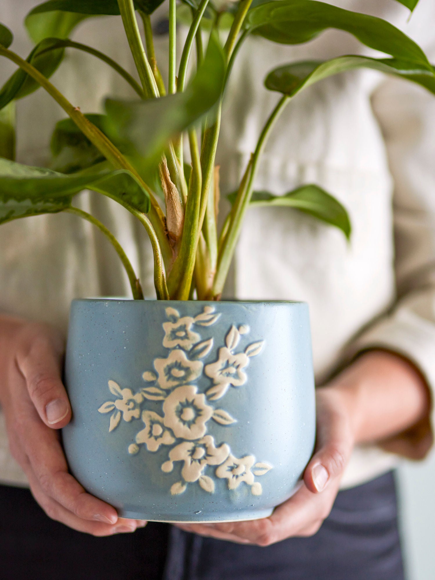 Beth Teekanne Aus Steingut Naturfarbe mit Retro Muster und Grüner Deckel